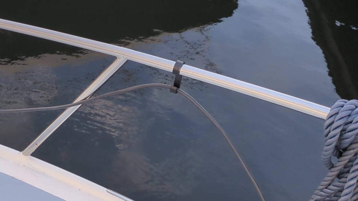 Ein ordentlich an der Reling ausgehangenes Landstromkabel schafft optische Ordnung, verhindert Stolperfallen und beugt Verschmutzung vor.
